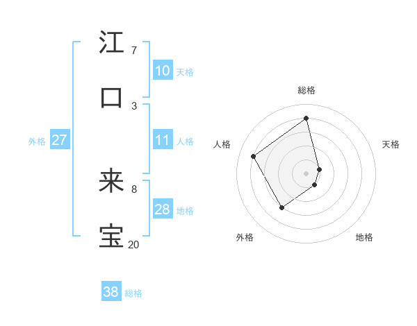 江口 来宝さんの総格は38画の4点!