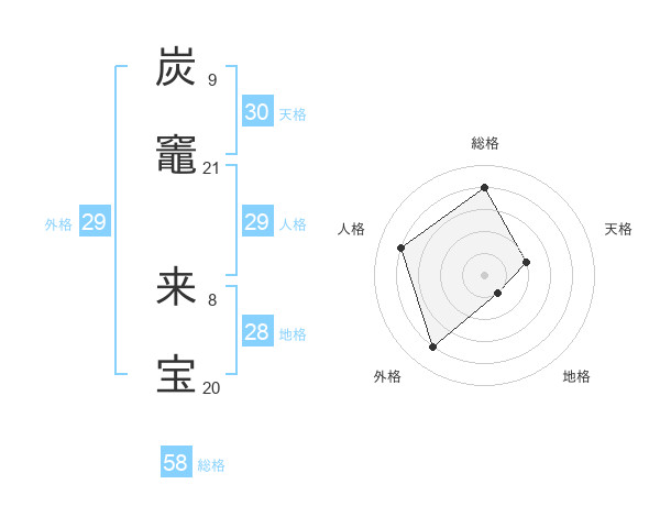 炭竈 来宝さんの総格は58画の4点!
