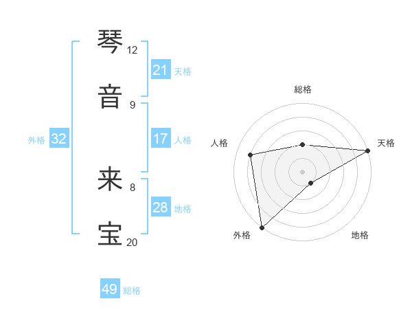 琴音 来宝さんの外格は32画の5点!