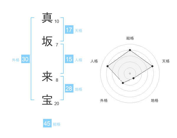真坂 来宝さんの総格は45画の4点!