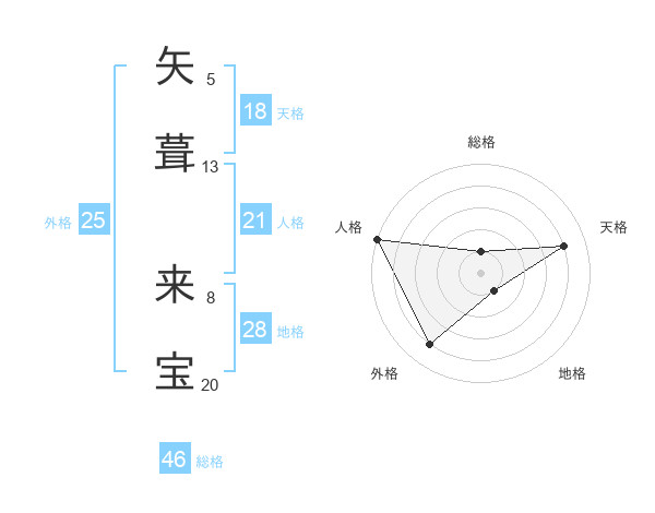 矢葺 来宝さんの総格は46画の1点!