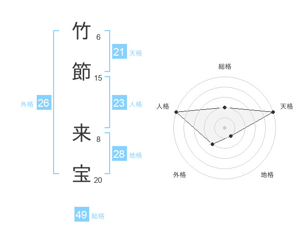 竹節 来宝さんを姓名の画数から五運を鑑定