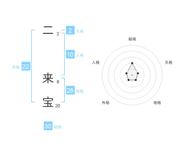 二 来宝さんの総格は30画の2点!