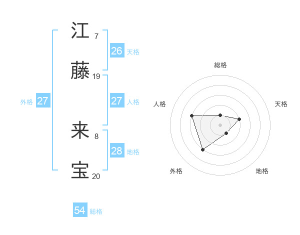 江藤 来宝さんの総格は54画の1点!