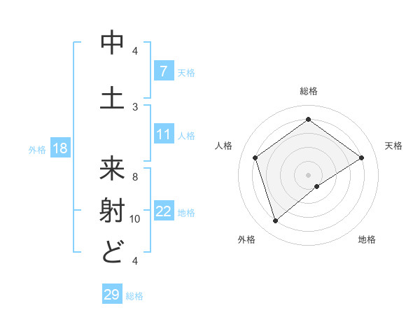 中土 来射どさんの天格は7画の4点!