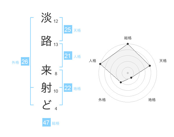淡路 来射どさんの総格は47画の5点!