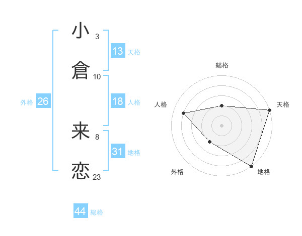 小倉 来恋さんを姓名の画数から五運を鑑定