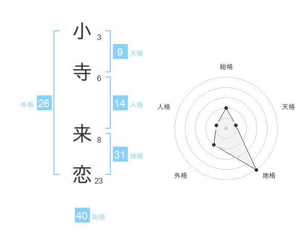 小寺 来恋さんを姓名の画数から五運を鑑定