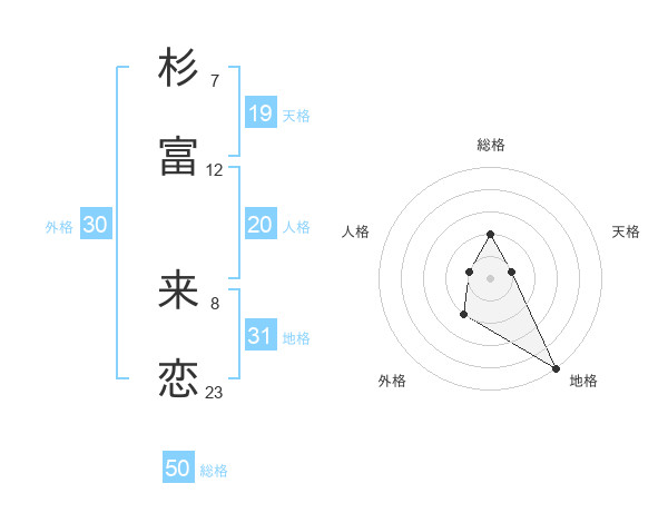 杉富 来恋さんを姓名の画数から五運を鑑定