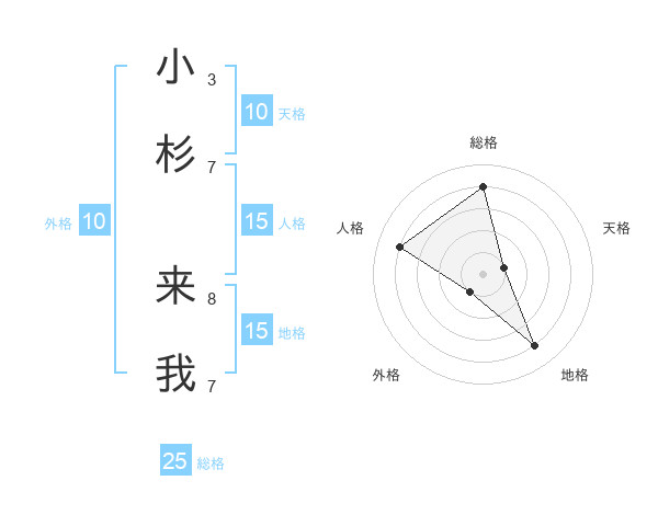 小杉 来我さんの天格は10画の1点!