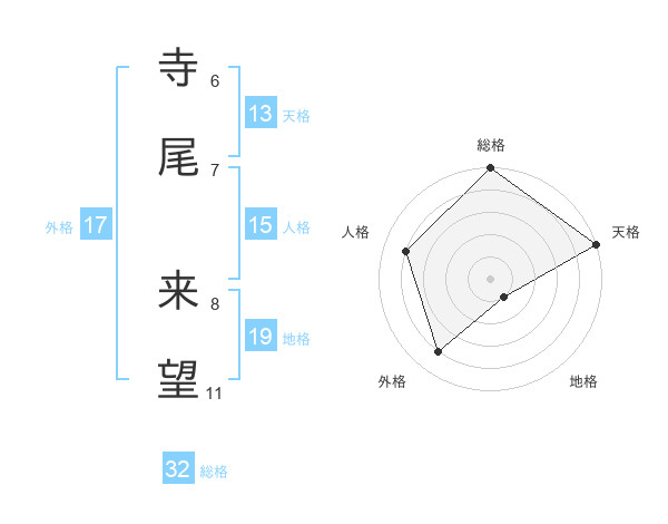 寺尾 来望さんの総格は32画の5点!