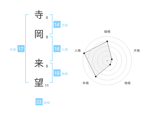 寺岡 来望さんを姓名の画数から五運を鑑定