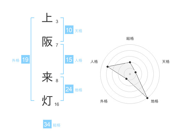上阪 来灯さんの総格は34画の2点!