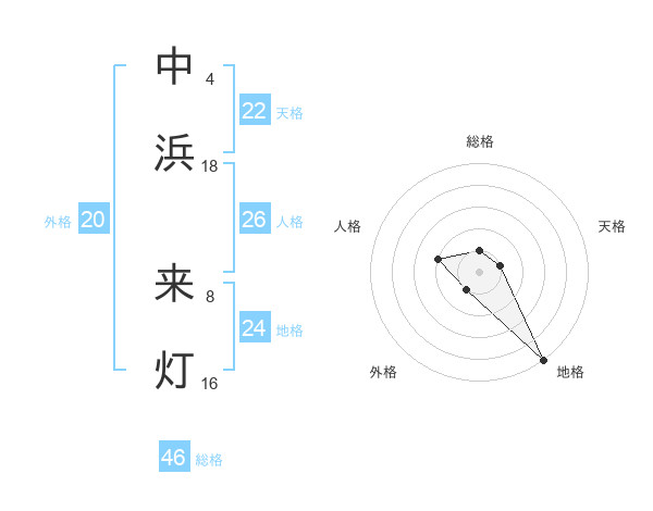 中浜 来灯さんの総格は46画の1点!