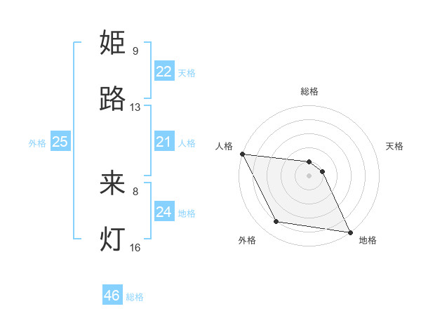 姫路 来灯さんを姓名の画数から五運を鑑定
