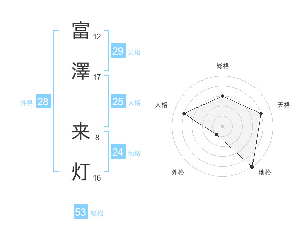 富澤 来灯さんの総格は53画の3点!