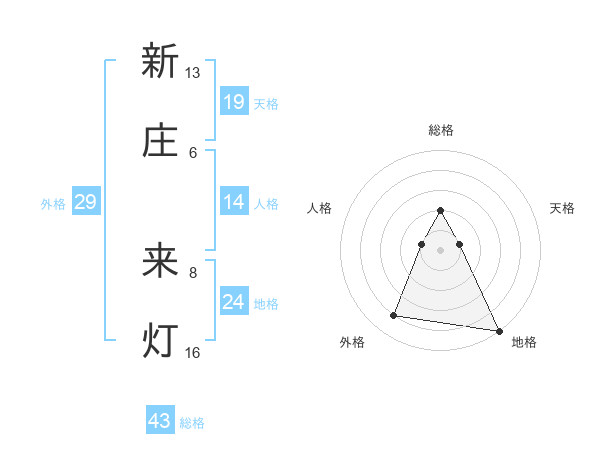 新庄 来灯さんを姓名の画数から五運を鑑定