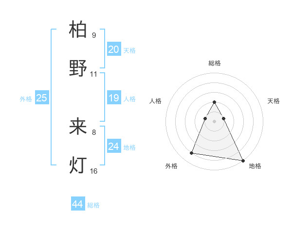 柏野 来灯さんの外格は25画の4点!