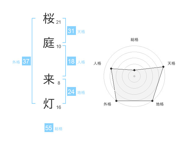桜庭 来灯さんの総格は55画の1点!