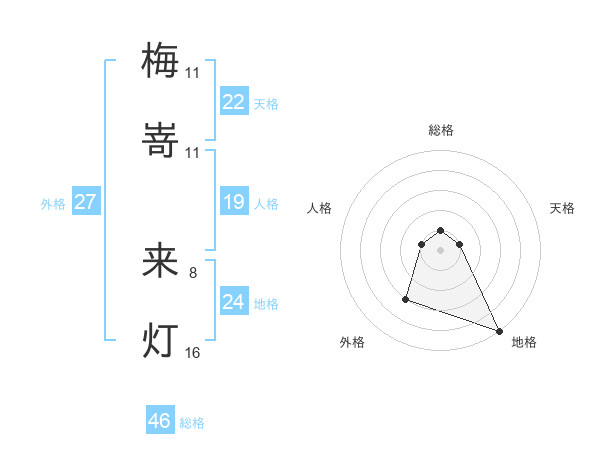 梅嵜 来灯さんの地格は24画の5点!