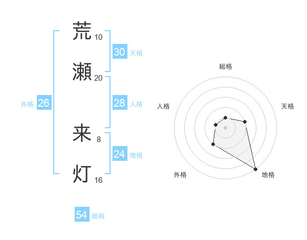 荒瀬 来灯さんを姓名の画数から五運を鑑定