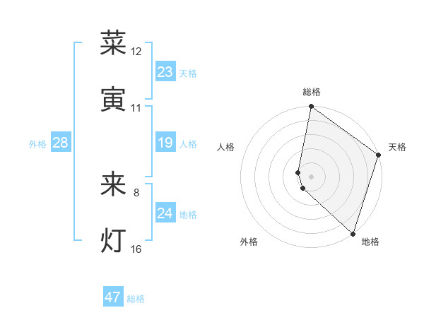 菜寅 来灯さんの総格は47画の5点!