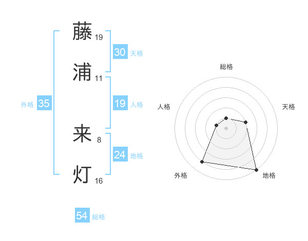 藤浦 来灯さんを姓名の画数から五運を鑑定