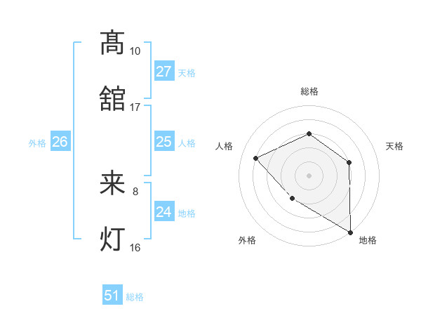 髙舘 来灯さんを姓名の画数から五運を鑑定
