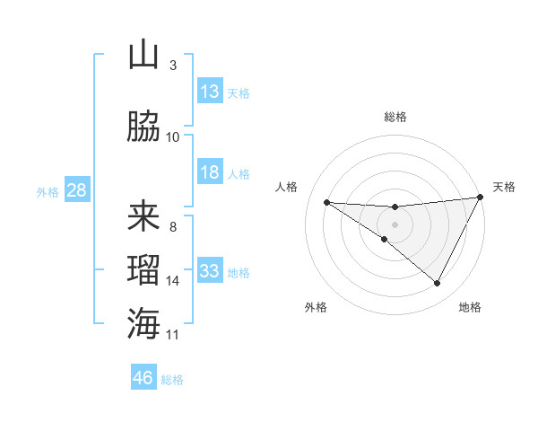 山脇 来瑠海さんを姓名の画数から五運を鑑定