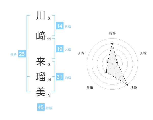 川﨑 来瑠美さんを姓名の画数から五運を鑑定
