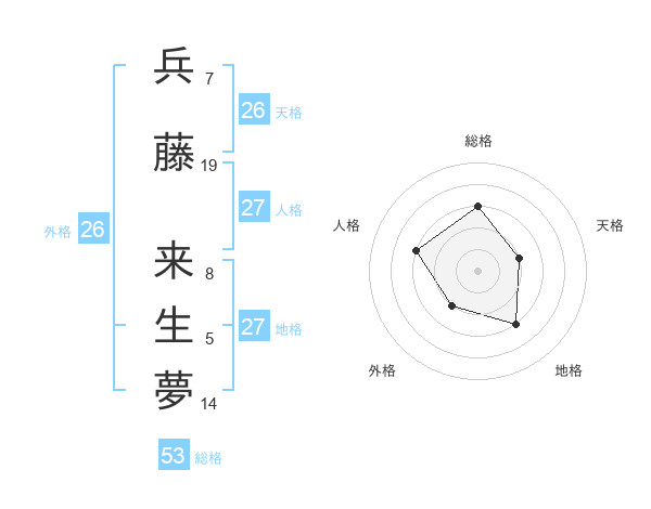 兵藤 来生夢さんの総格は53画の3点!