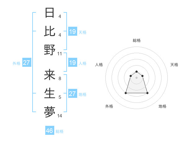 日比野 来生夢さんの外格は27画の3点!