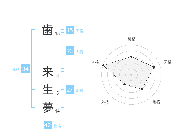 歯 来生夢さんの外格は34画の2点!