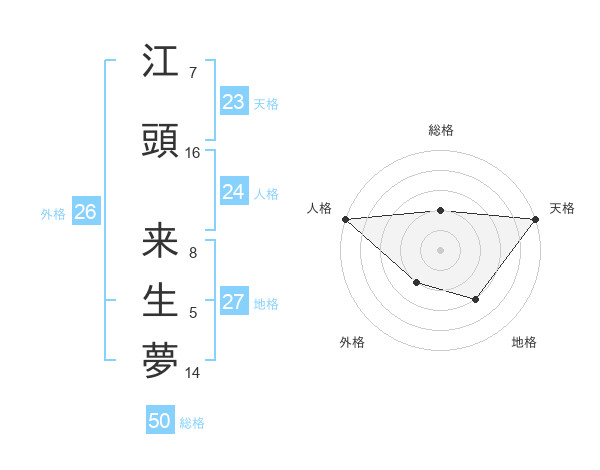江頭 来生夢さんを姓名の画数から五運を鑑定