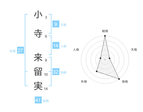 小寺 来留実さんの総格は41画の5点!