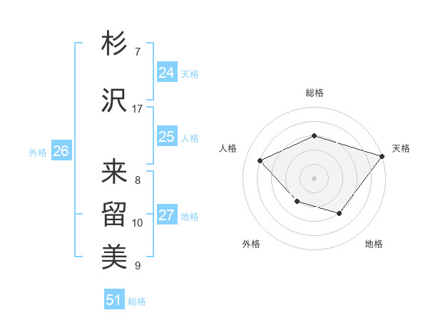 杉沢 来留美さんの天格は24画の5点!