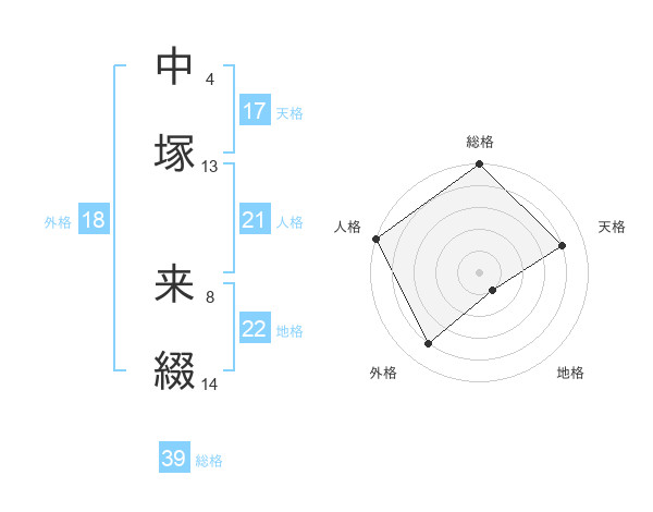 中塚 来綴さんを姓名の画数から五運を鑑定