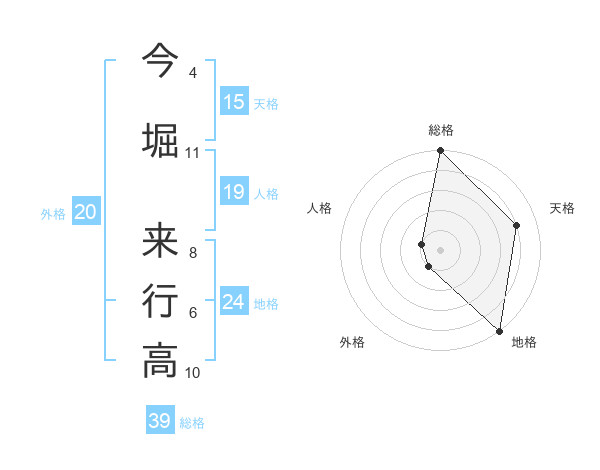 今堀 来行高さんを姓名の画数から五運を鑑定