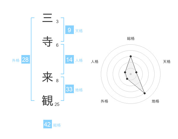 三寺 来観さんを姓名の画数から五運を鑑定
