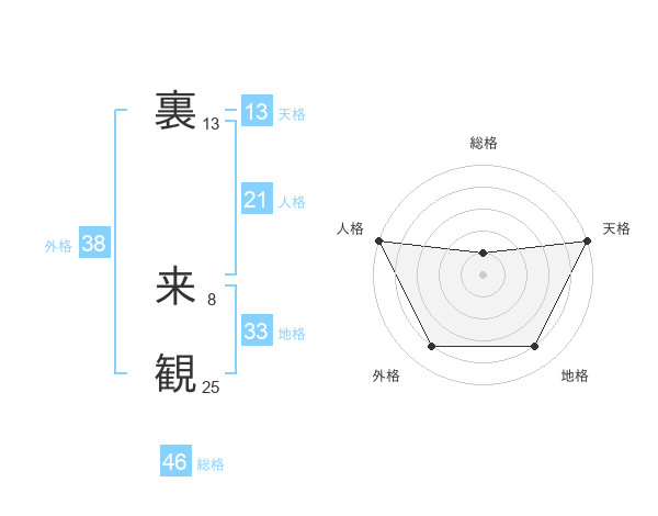 裏 来観さんの総格は46画の1点!