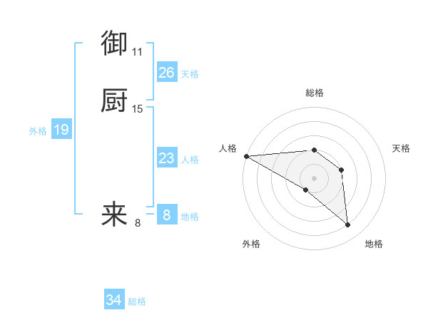 家系が持つ宿命的な運勢を表します。祖先から受け継いだ苗字ですので自分の力が及びません。家柄を象徴します。