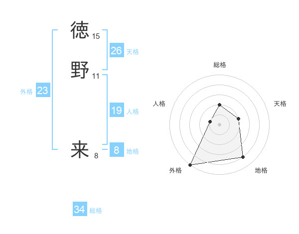 徳野 来さんを姓名の画数から五運を鑑定