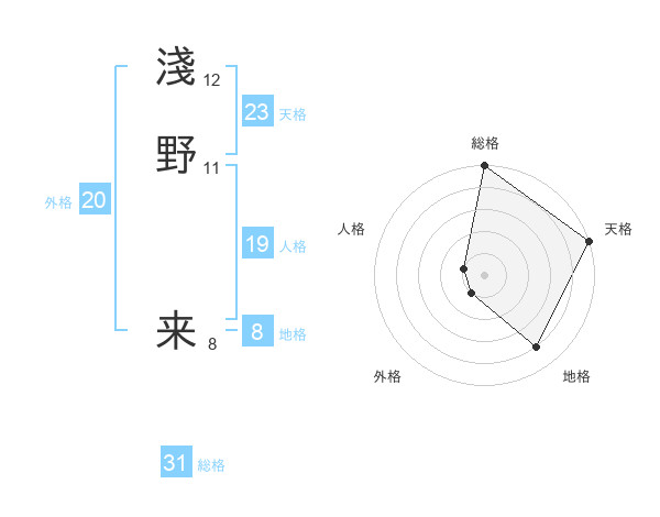 淺野 来さんの総格は31画の5点!