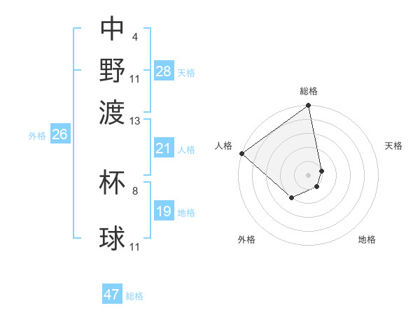 中野渡 杯球さんを姓名の画数から五運を鑑定