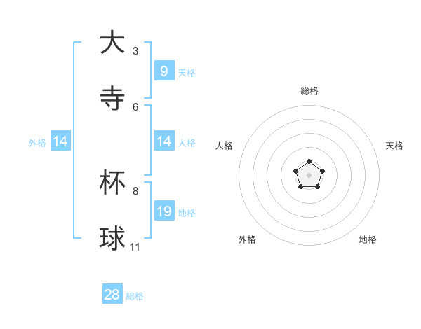 大寺 杯球さんを姓名の画数から五運を鑑定