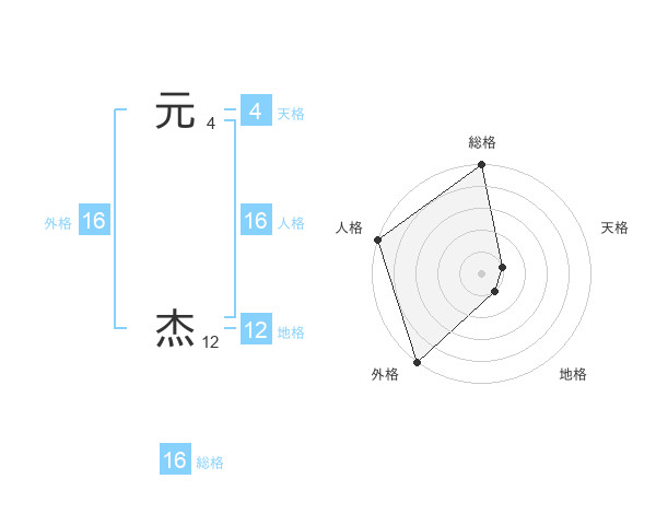 元 杰さんの外格は16画の5点!