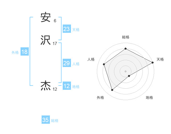 安沢 杰さんの天格は23画の5点!