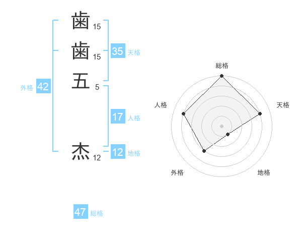 歯歯五 杰さんを姓名の画数から五運を鑑定