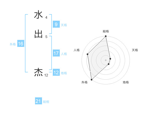 水出 杰さんの総格は21画の5点!