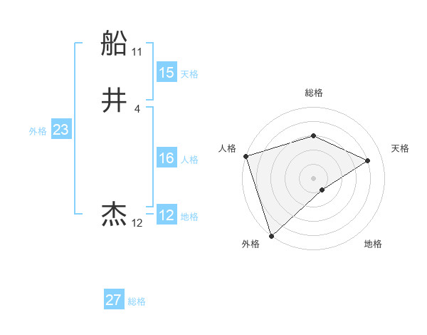 船井 杰さんの総格は27画の3点!